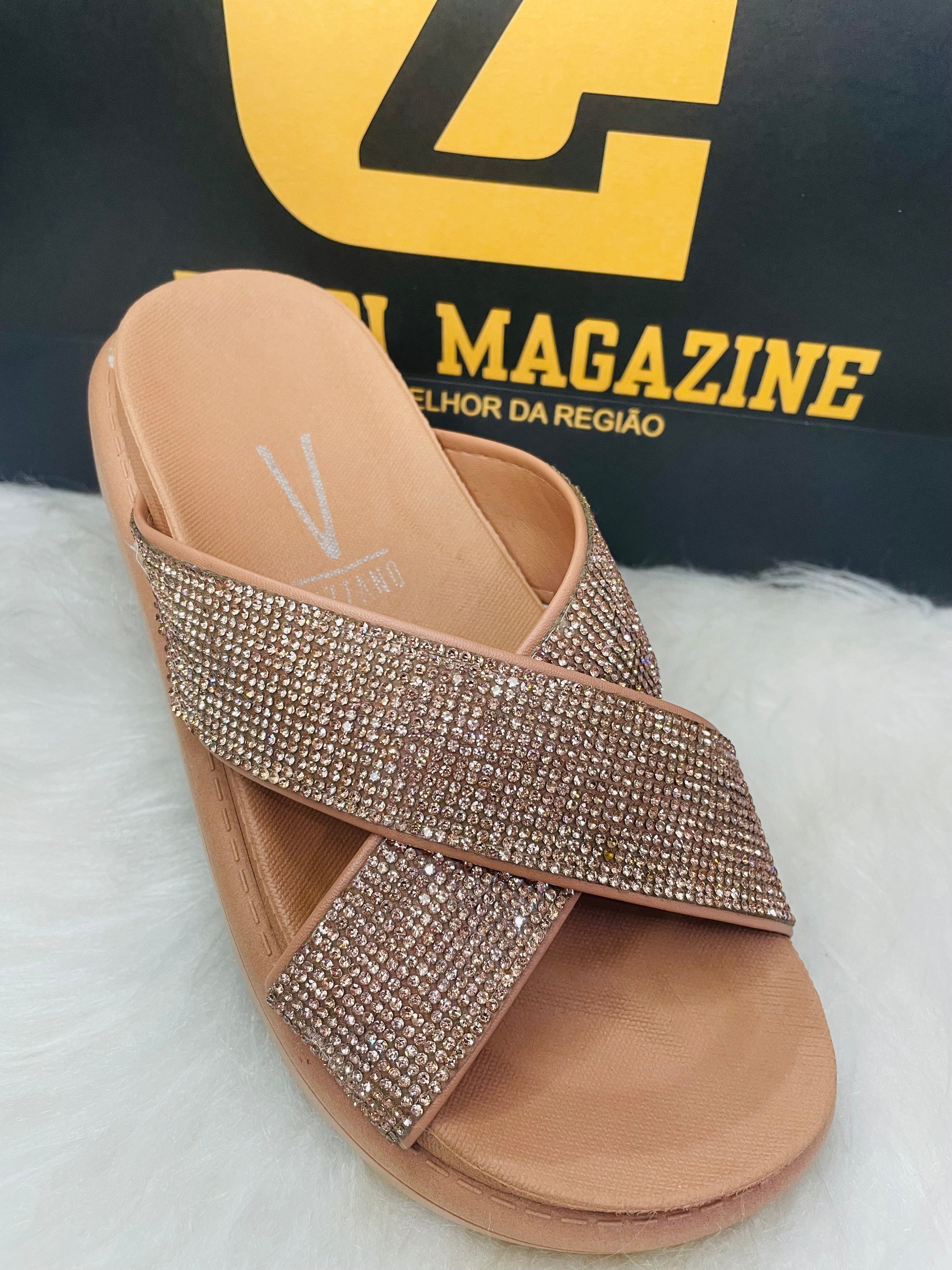 A Zoppi Magazine traz para você o brilho que faltava no seu dia a dia! Esta sandália Vizzano é a união perfeita entre o conforto anatômico e o glamour das passarelas. Com tiras cruzadas inteiramente cravejadas em cristais, ela é o acessório ideal para quem quer se destacar com elegância e leveza.