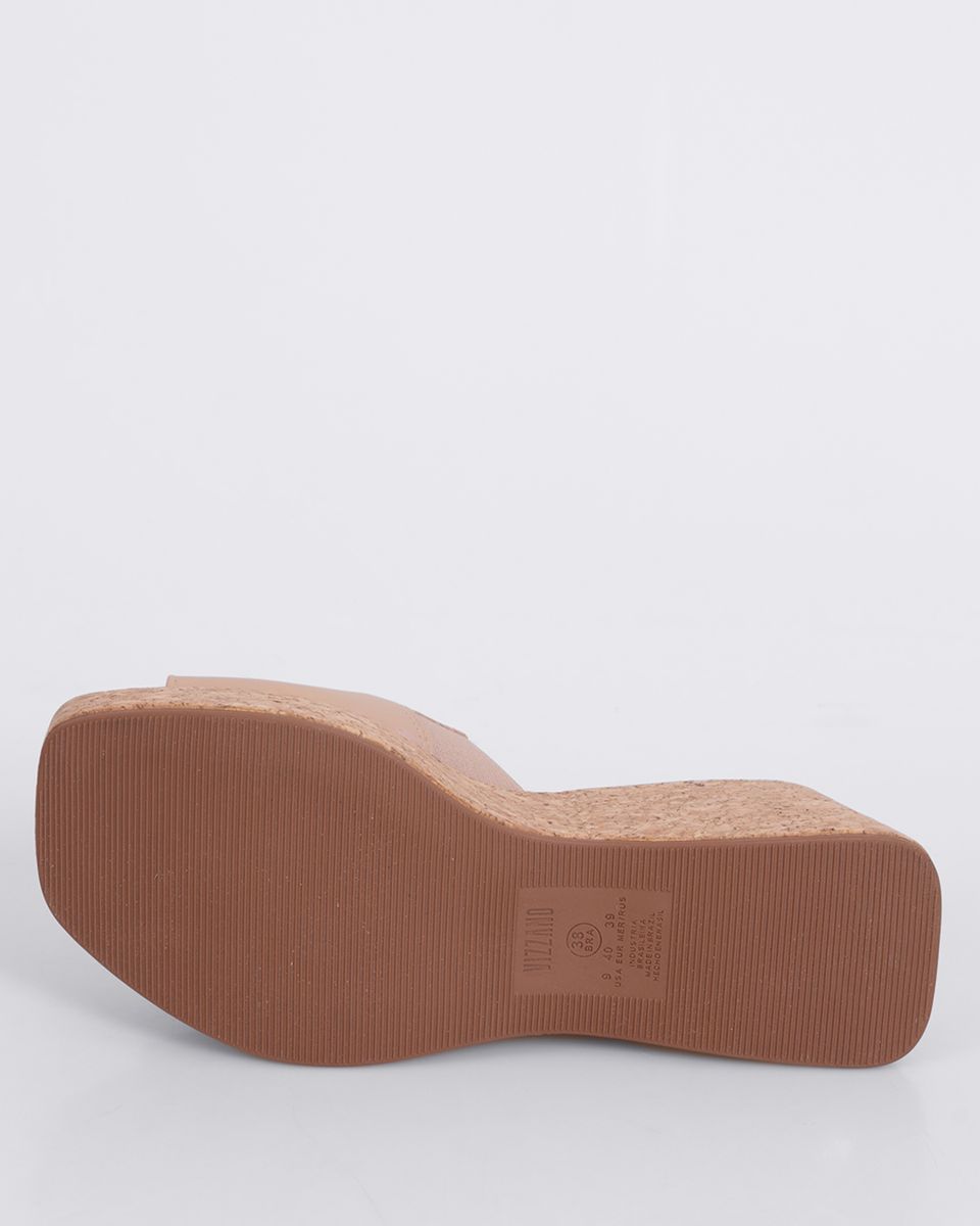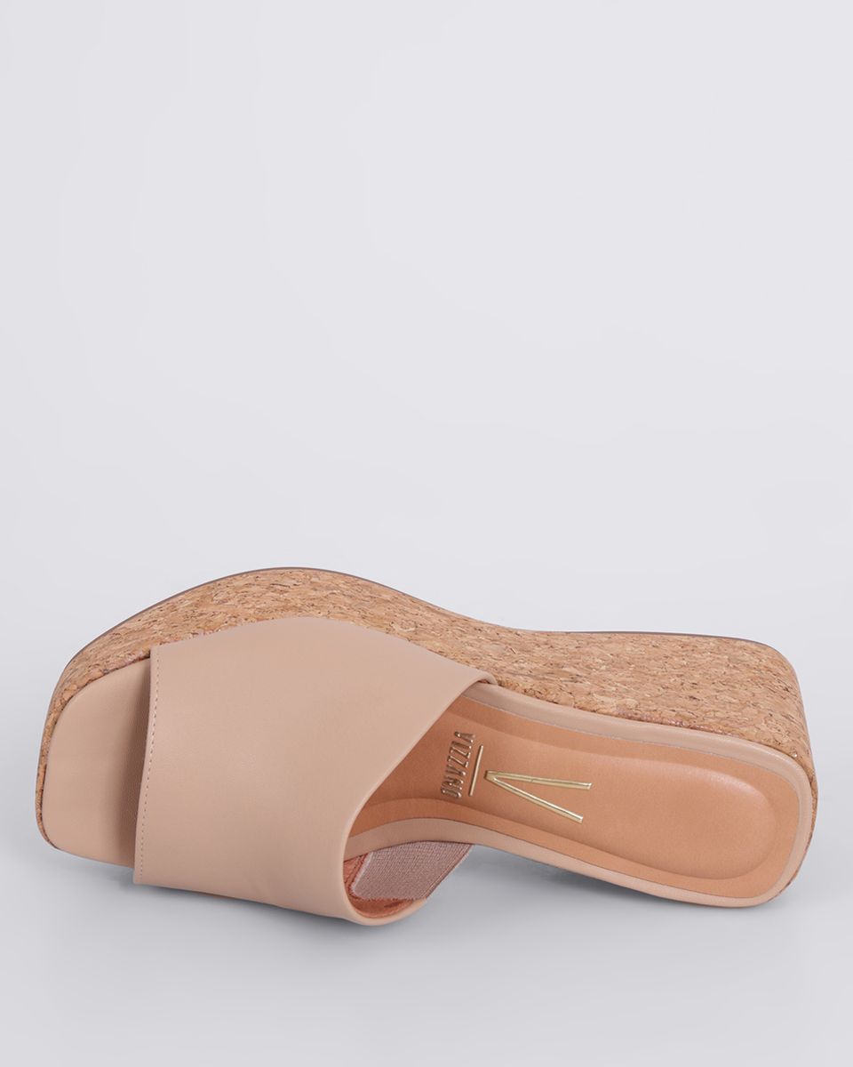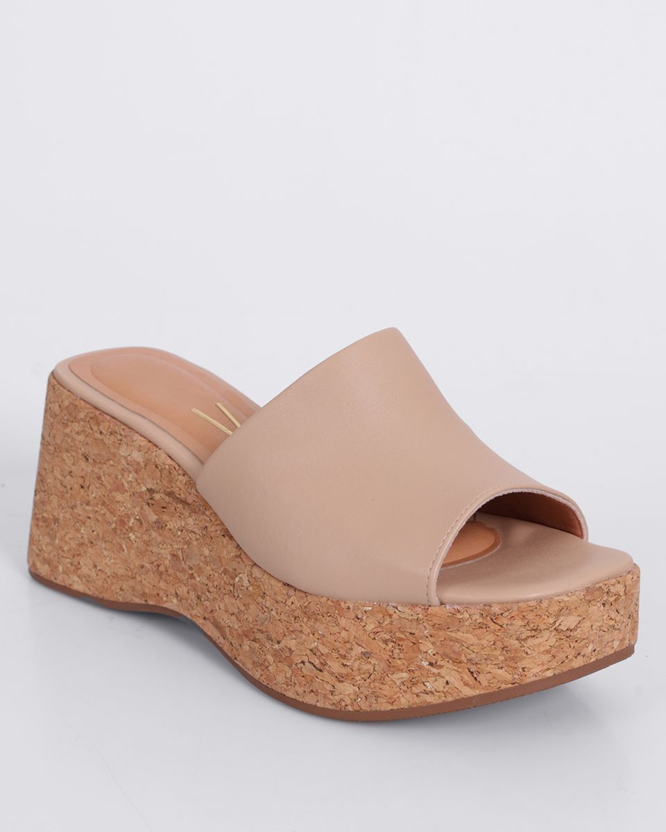 O grande destaque deste modelo é o seu salto em acabamento de cortiça, que traz uma estética artesanal e solar, a cara das estações mais quentes. A cor nude (bege) da tira é neutra e versátil, garantindo que ele combine com praticamente tudo no seu guarda-roupa! 👗